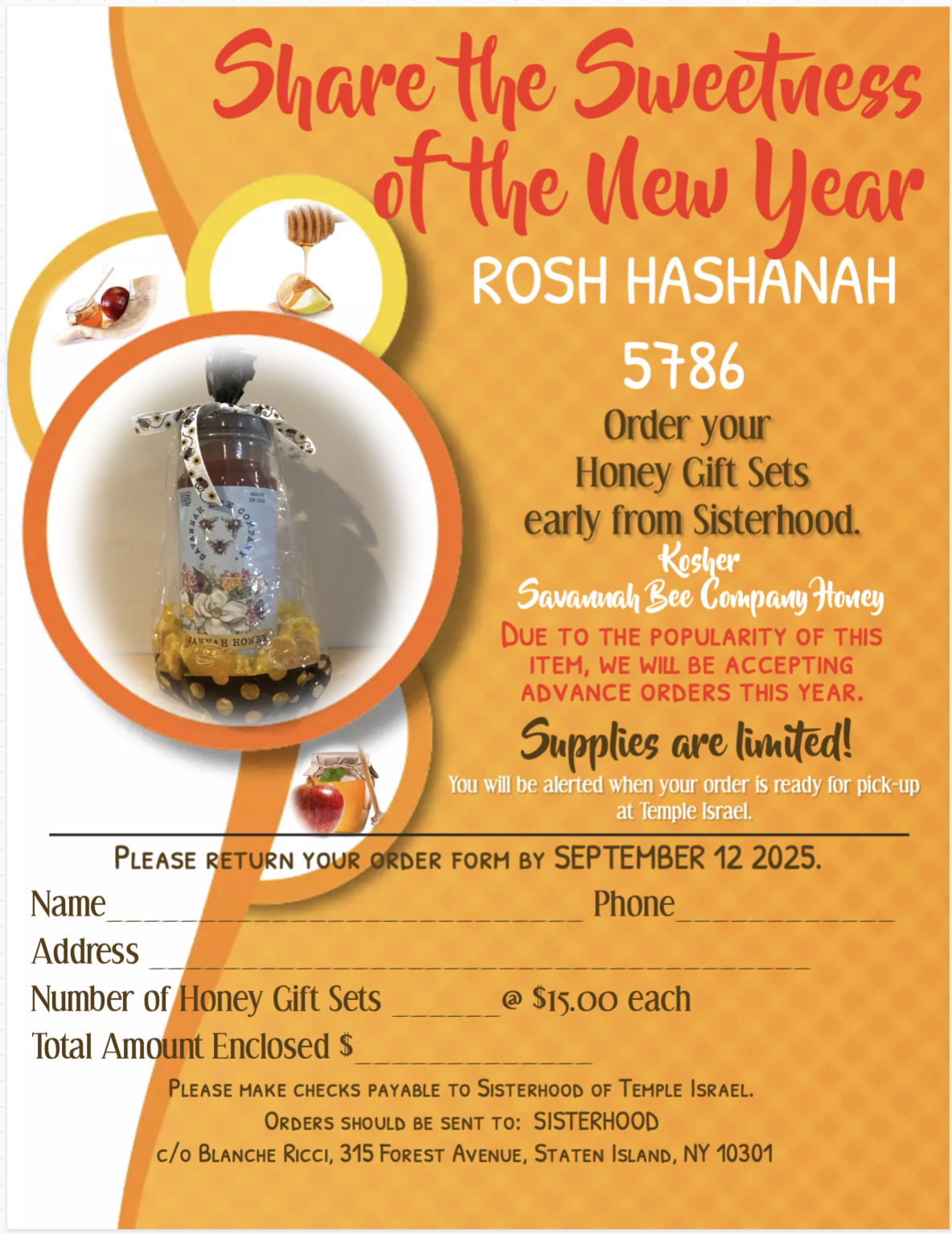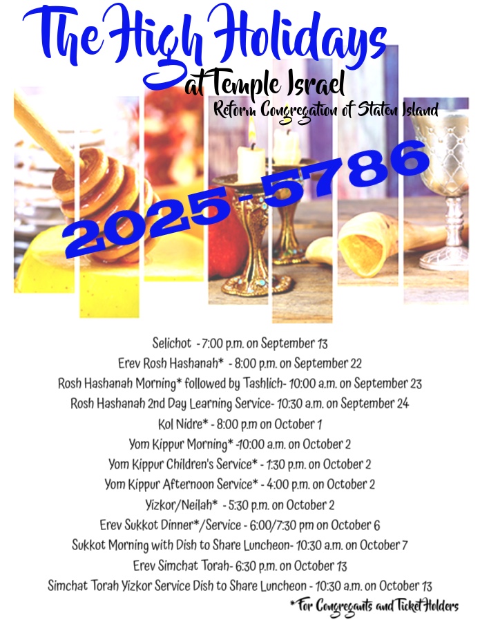 If you are interested in purchasing tickets for our High Holy Day services, please send an email to office@templeisraelsiny.org  or call 718-727-2231